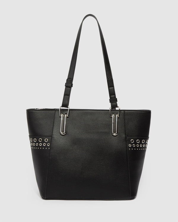Black Carissa Eyelet Tote Bag