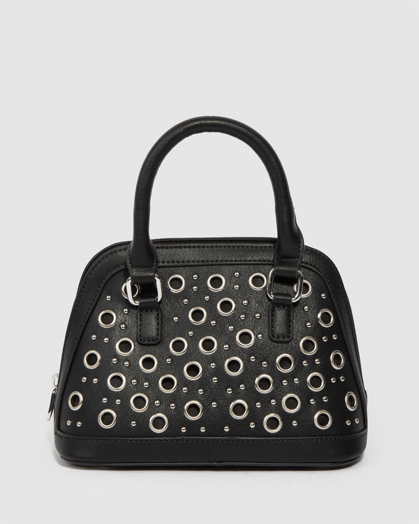 Part of our Pop Punk collection Black finish with Nickel tone hardware Vegan leather Eyelet detail Zip closure Internal zipped and slip pockets Detachable/adjustable shoulder strap Black lining with colette...