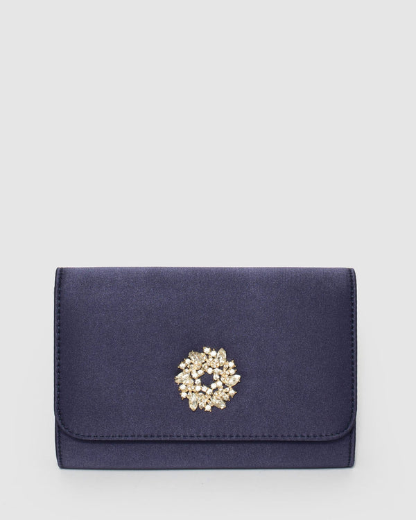 Navy Blue Lulu Crystal Clutch Bag