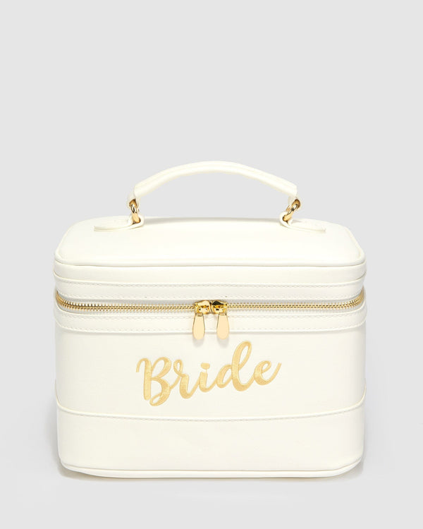 Part of our All Class collection White finish with gold tone hardware Smooth vegan leather Zip around closure Opens to 2 additional removable cosmetic cases Large removable case features internal zip...