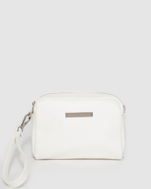Part of our Crossbody Classics collection White finish with silver tone hardware Smooth vegan leather Zip closure Detachable wristlet strap Detachable crossbody chain White lining with colette by colette hayman branding Measurements:...