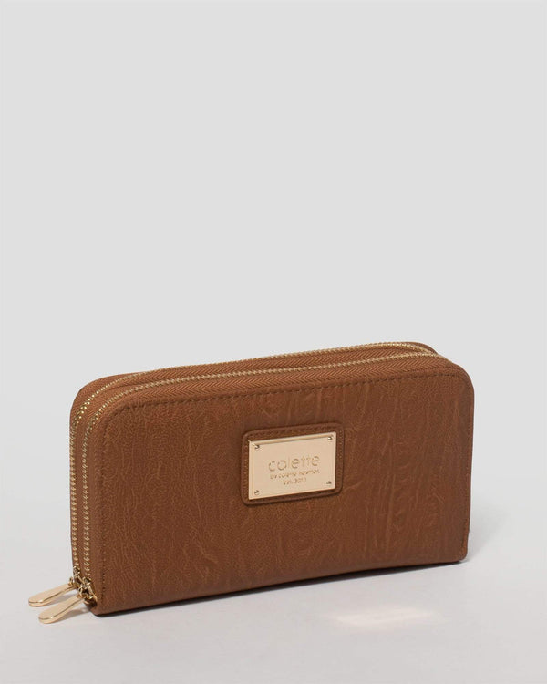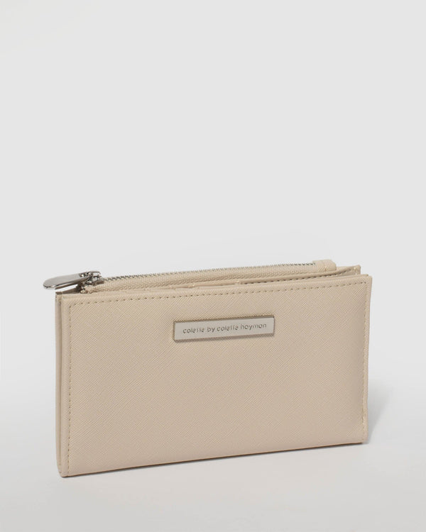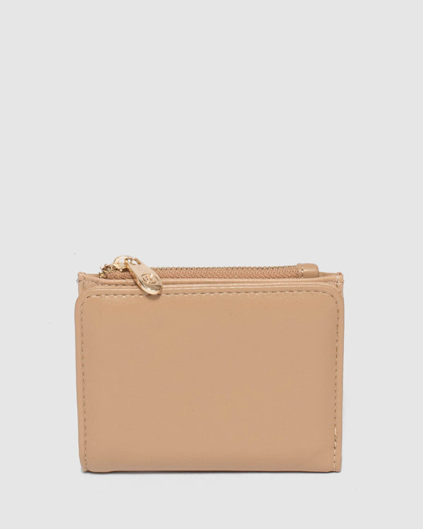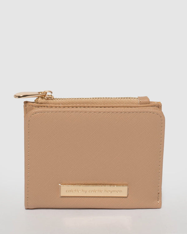 Part of our Wallet Classics collection Taupe finish with gold tone hardware Textured vegan leather Press stud front closure External zip coin compartment Internal 8 card slots Internal note slot Ivory lining with colette by...