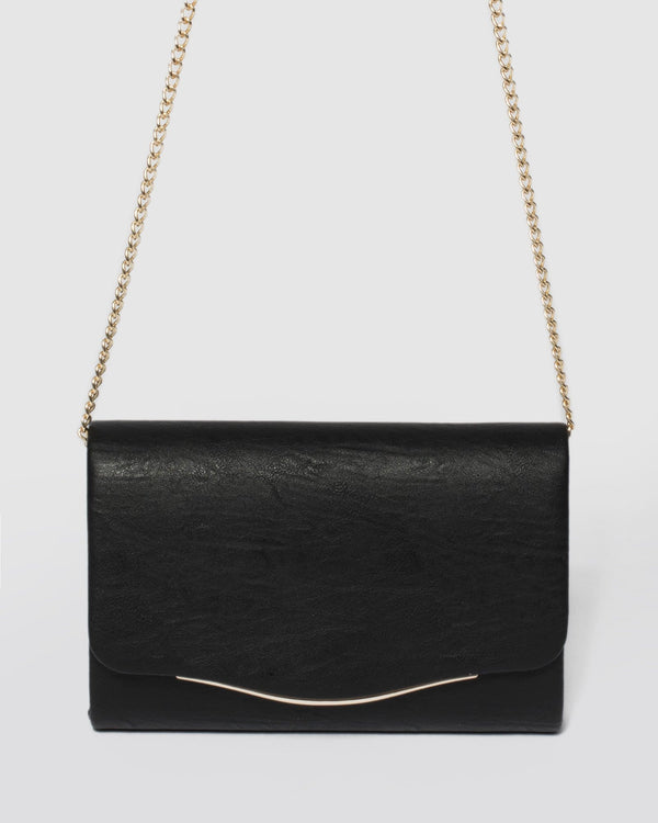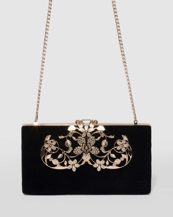 Part of our Clutch Classics collection Silver finish with silver tone hardware Diamante and pu material Push lock clap secures main compartment Internal slip pocket Detachable chain shoulder strap Black...
