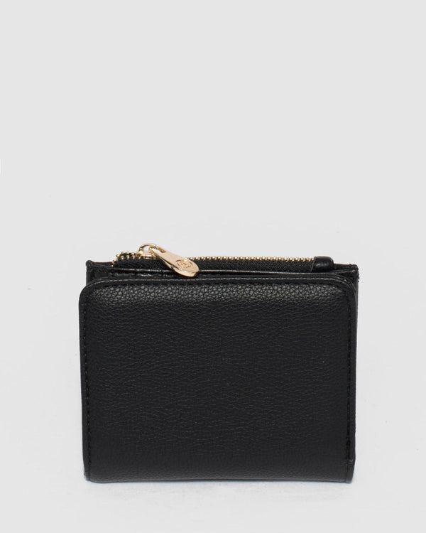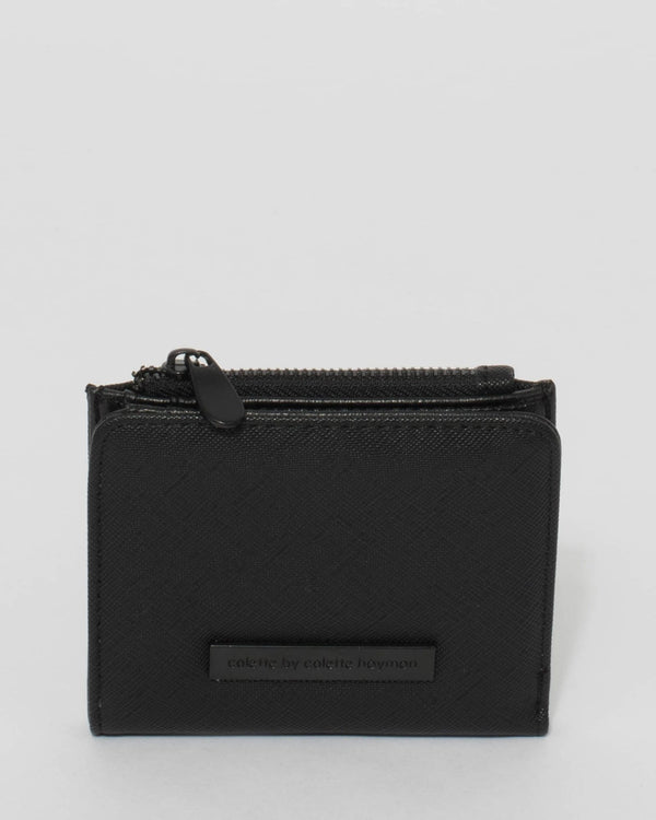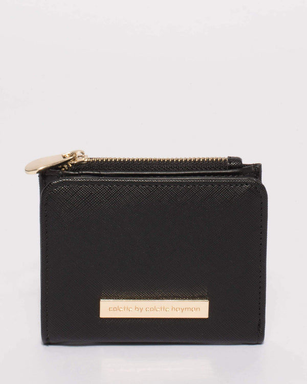 Part of our Purse Classics collection Black finish with gold tone hardware Saffiano textured vegan leather Press stud secures main compartment External zipped coin compartment 4 card slots 1 note...