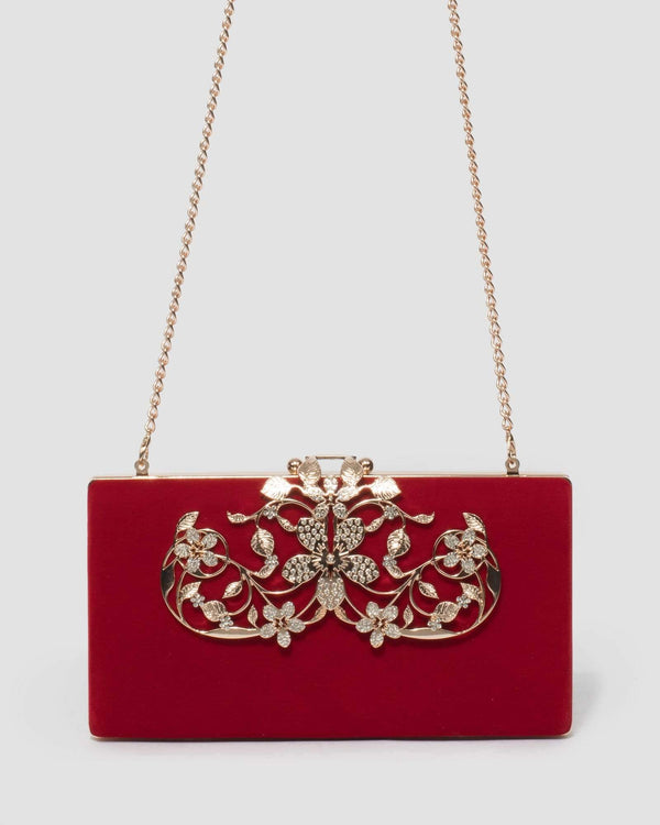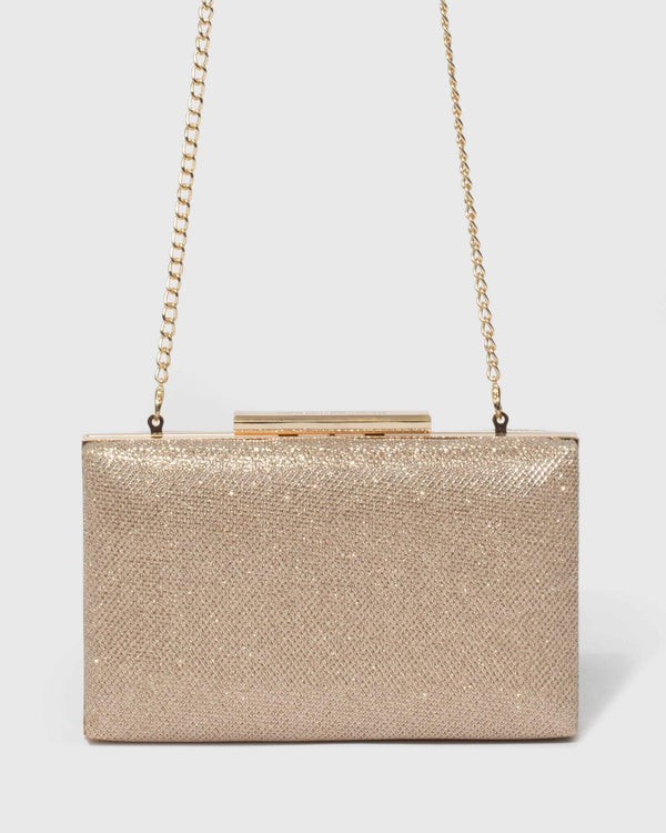 Part of our Clutch Classics collection Rose Gold finish with rose gold tone hardware Embellished crystal and vegan leather finish Push lock closure Internal slip pocket Detachable chain shoulder straps...
