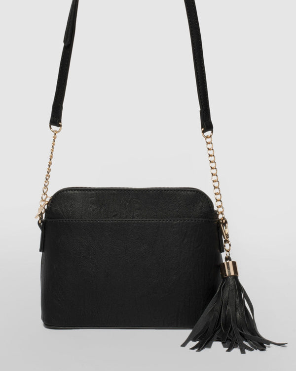 Part of our Crossbody Classics collection Black finish with gunmetal tone hardware Smooth faux leather Zip closure Detachable tassel Internal zip and slip pocket Adjustable shoulder strap Black nylon lining...