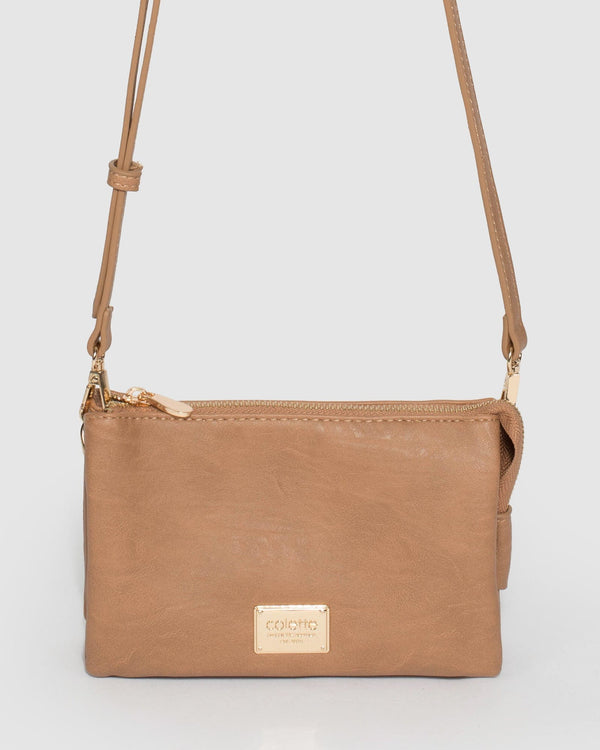 Part of our Crossbody Classics collection Caramel finish with gold tone hardware Vegan leather Zip closure Internal zip and slip pockets Detachable tassel Fixed adjustable shoulder strap Black lining with colette...