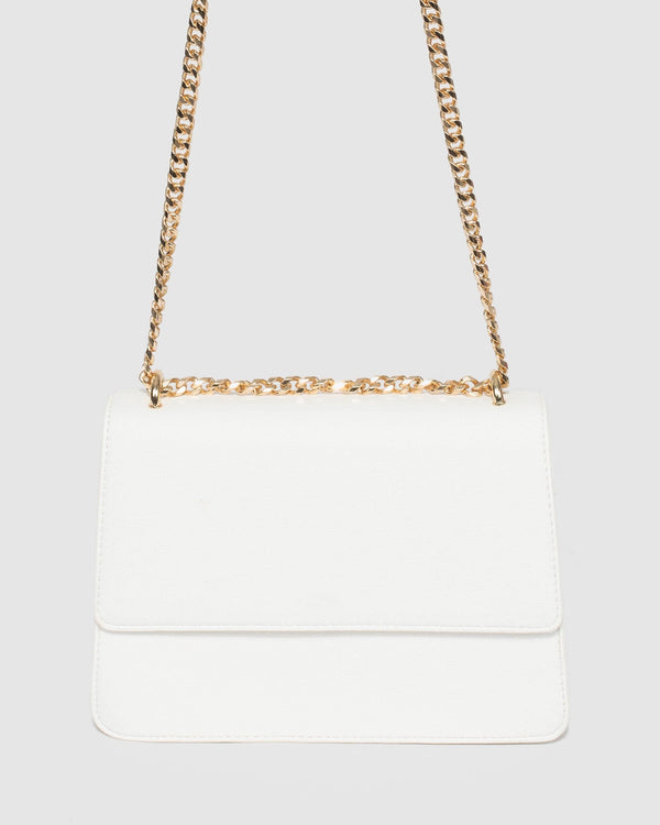 Part of our Crossbody Classics collection White finish with silver tone hardware Smooth vegan leather Zip closure Detachable wristlet strap Detachable crossbody chain White lining with colette by colette hayman branding Measurements:...