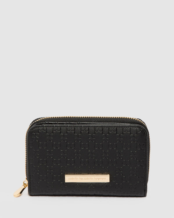 Part of our Bossing it collection Black finish with matte black tone hardware Embossed faux leather Press stud closure 8 Internal card slots Note/slip slot Zipped coin compartment Black PU...