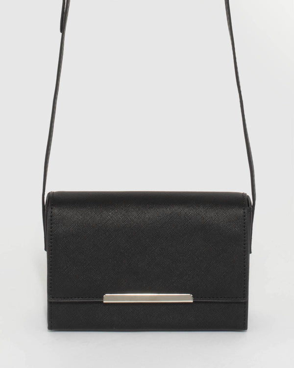Part of our Black collection Black finish with silver tone hardware Saffiano vegan leather Magnetic closure Fixed adjustable shoulder strap Black lining with colette by colette hayman branding Measurements: H13cm x...