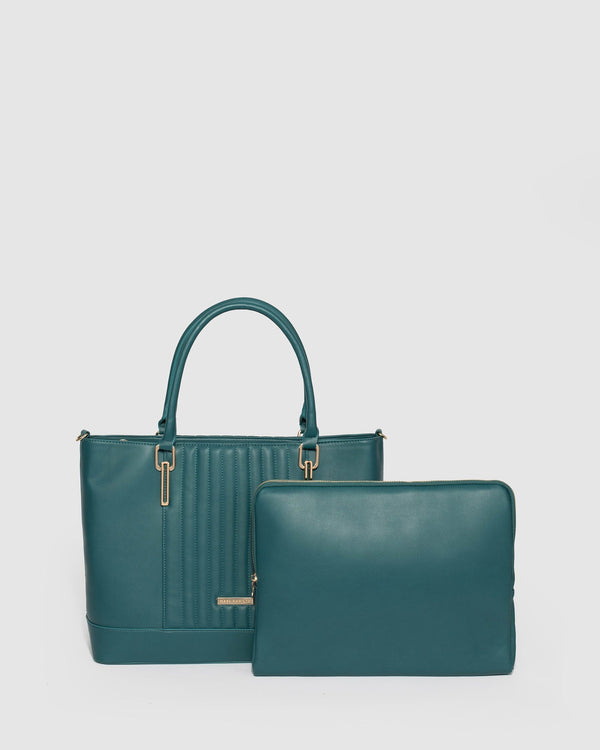 Part of our Blue Lagoon collection Blue finish with gold tone hardware Woven finish with textured faux leather 3 Compartments with zip closures Internal zip, slip and mobile phone pockets...