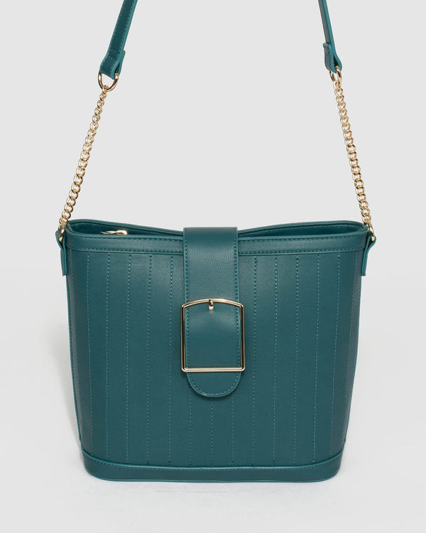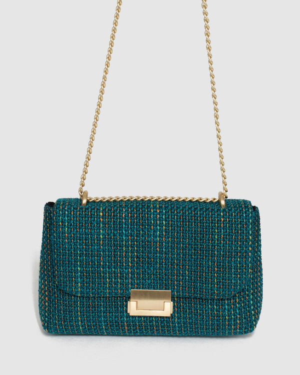 Part of our Blue Lagoon collection Blue finish with gold tone hardware Woven finish Push lock closure Internal zipped pocket Fixed chain shoulder strap Black lining with colette by colette...