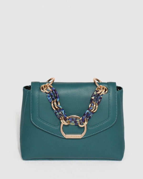Part of our Blue Lagoon collection Blue finish with gold tone hardware Textured faux leather Magnetic closure Internal zipped and slip pockets Detachable adjustable shoulder strap Fixed chain top handle...