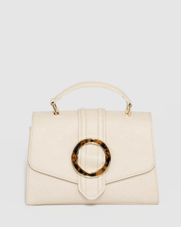 Part of our Blue Lagoon collection Ivory finish with gold tone hardware Textured faux leather Magnetic closure Internal zipped pocket 3 Internal card slots Detachable adjustable shoulder strap Fixed top...