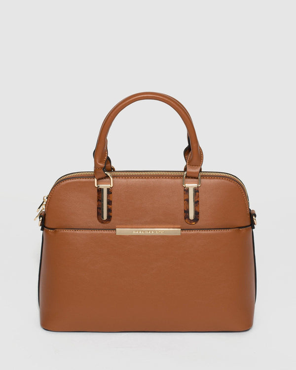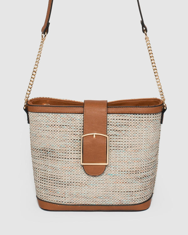 Part of our Tropic Tonic Collection Tan finish with gold tone hardware Textured faux leather Zip closure Internal zip, slip and mobile phone pockets Detachable adjustable shoulder strap Fixed bamboo...