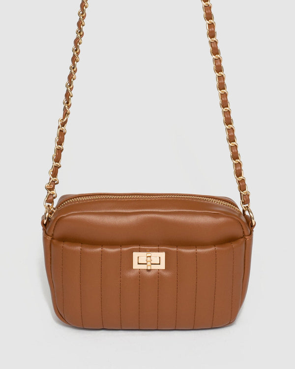 Part of our Blue Lagoon collection Tan finish with gold tone hardware Textured faux leather Zip closure Internal zip, slip and mobile phone pockets Detachable adjustable shoulder strap Detachable tag...