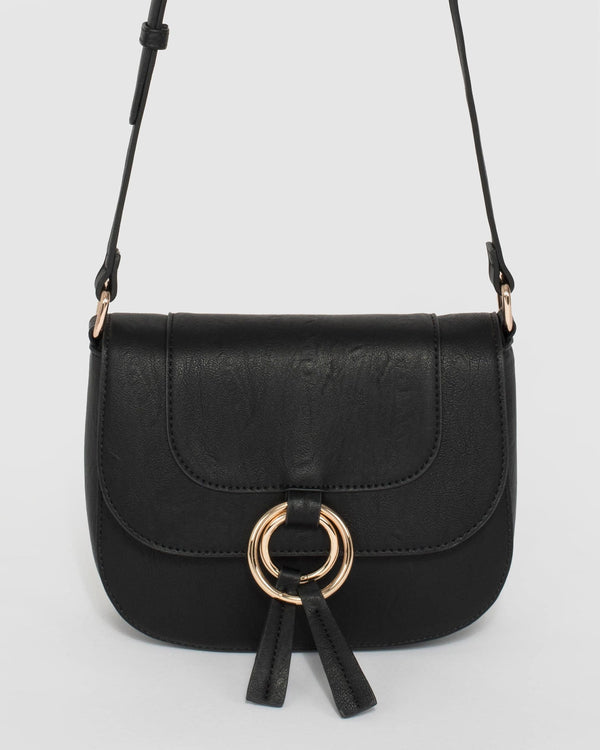 Part of our Westworld collection Black finish with gold tone hardware Textured faux leather Magnetic closure Internal zip pocket Fixed adjustable shoulder strap Black lining with colette by colette hayman branding...
