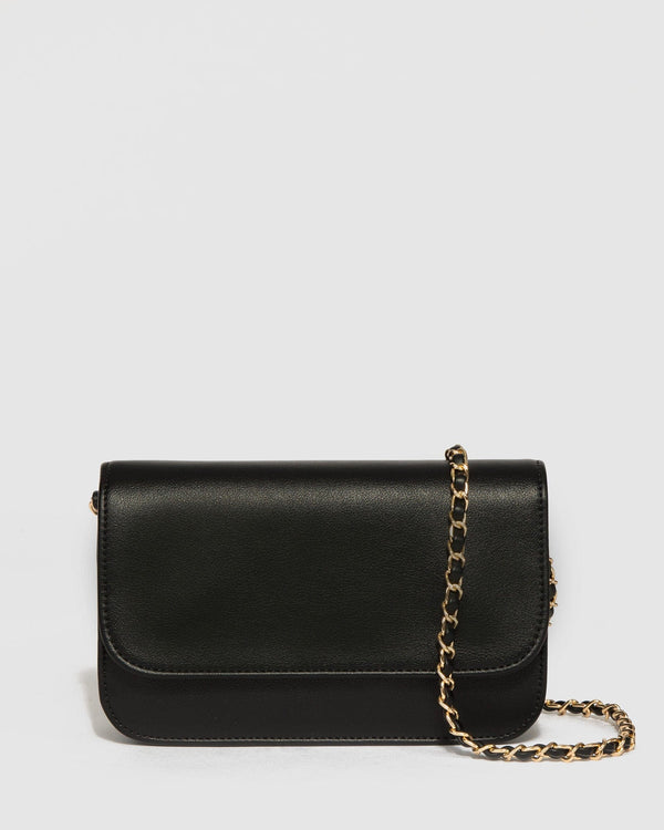Part of our Stargazer collection Black satin finish with silver tone hardware Metallic closure Detachable chain shoulder/crossbody strap Internal slip pocket Black lining with colette by colette hayman branding ...
