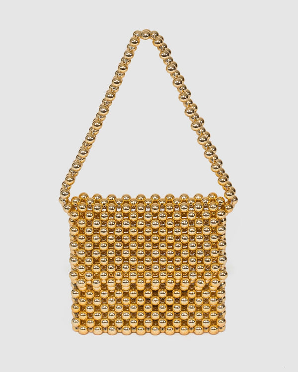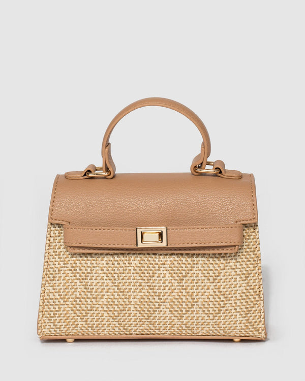 Part of our Resort Chic collection Nude weave finish with gold tone hardware Metallic closure Detachable, adjustable shoulder/crossbody strap Internal zip pocket Ivory lining with colette by colette hayman branding...