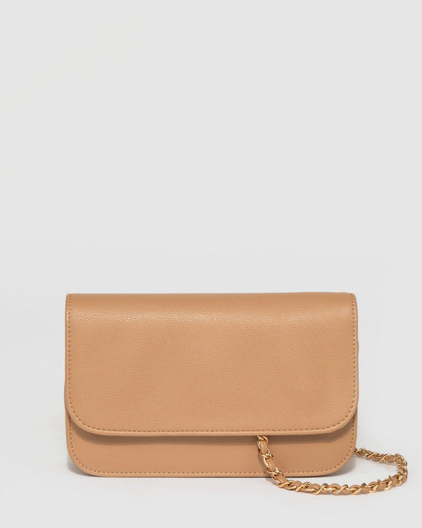 Part of our Raina collection Taupe finish with gold tone hardware Vegan leather Zip closure Chain crossbody strap Internal zip and slip pocket Black lining with colette by colette hayman...