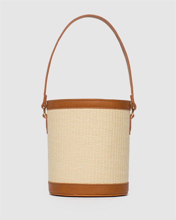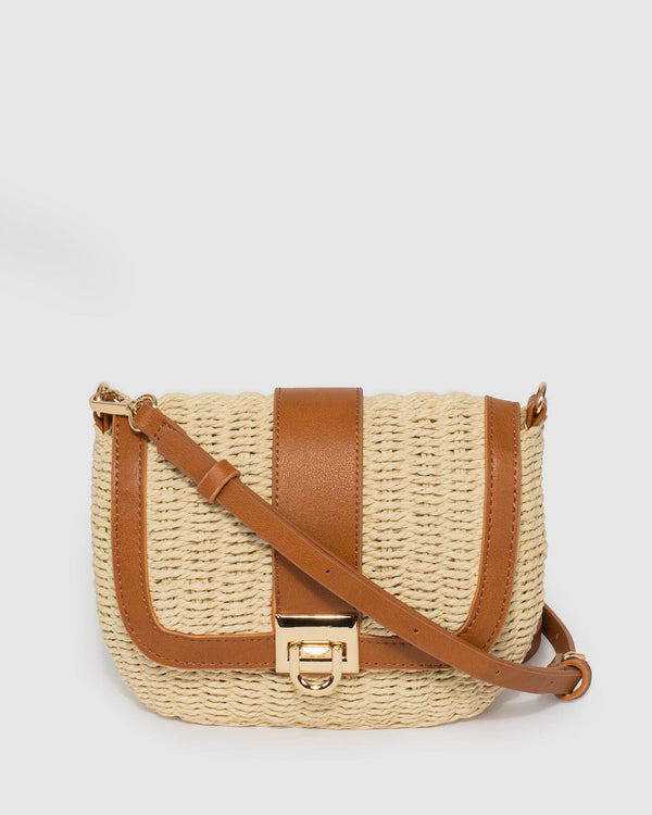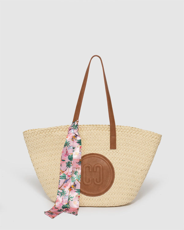 Beige straw straw finish with gold tone hardware