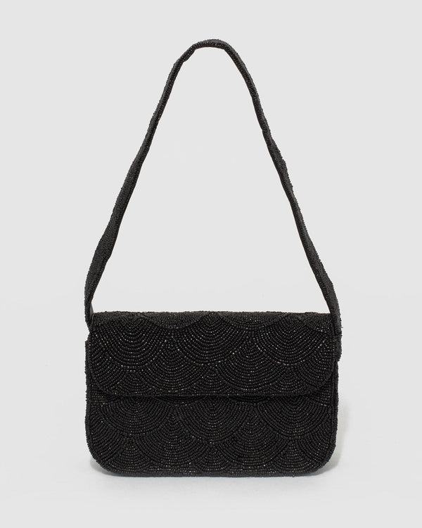Black Beaded Baguette Bag
