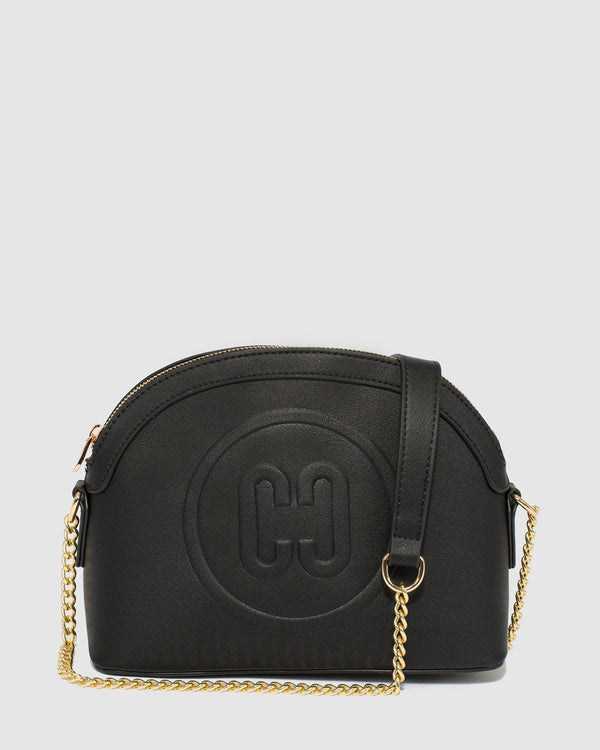 Part of our Raina collection Black finish with gold tone hardware Vegan leather Zip closure Chain crossbody strap Internal zip and slip pocket Black lining with colette by colette hayman branding...
