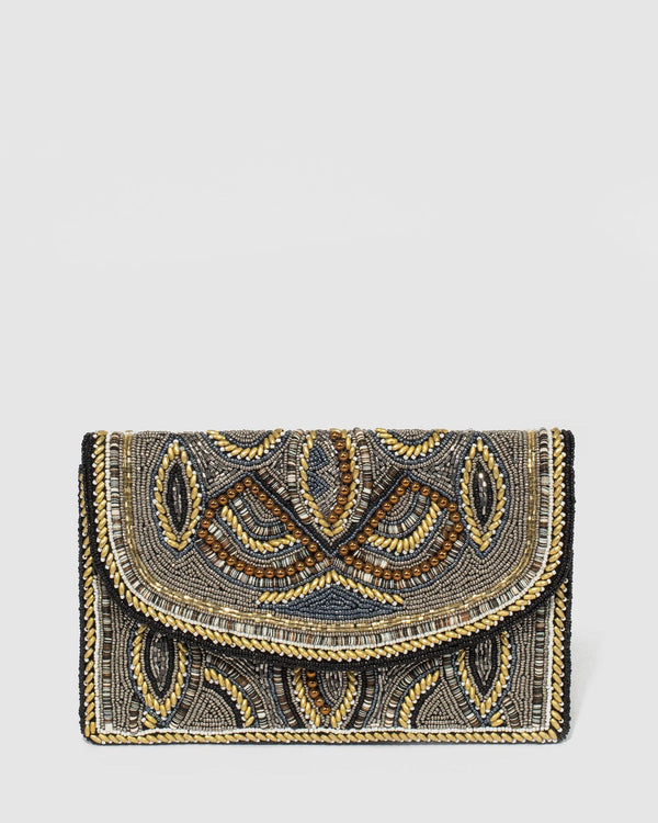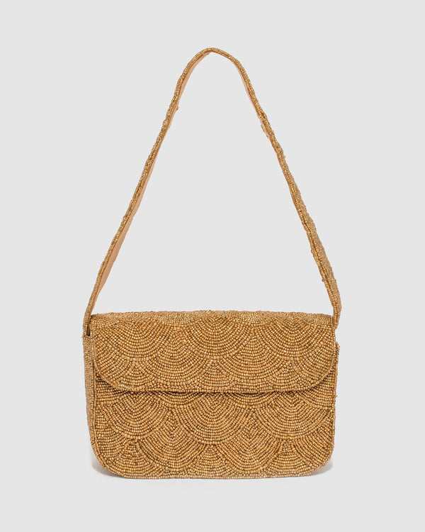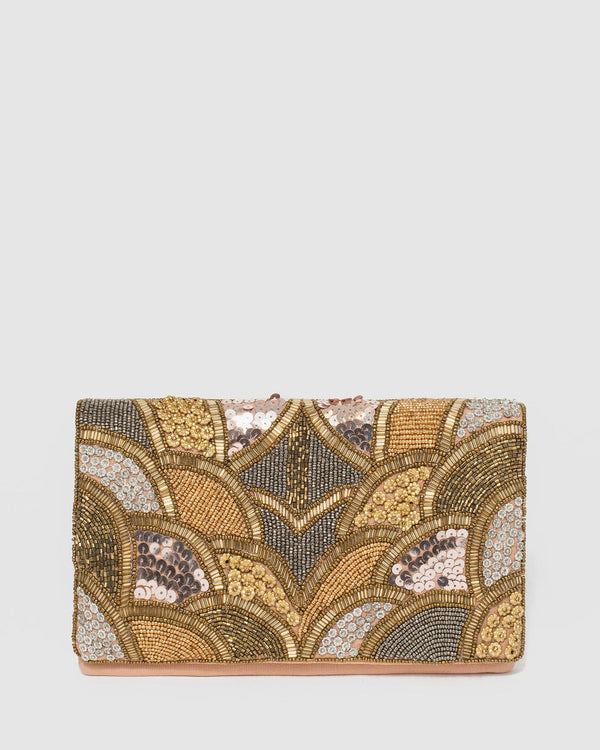 Gold Claire Beaded Clutch Bag