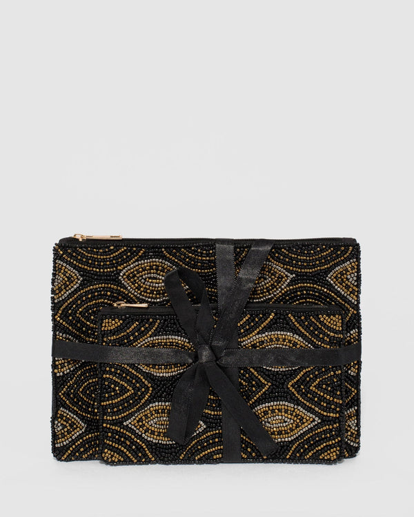 Part of our Urban Traveller collection Multi colour beaded finish with gold tone hardware Zip closure Larger purse has an internal zip pocket Both purses have a black interior lining...