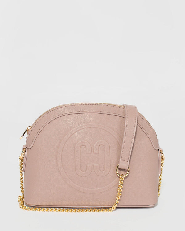Part of our Jingle Bells collection Taupe finish with gold tone hardware Vegan leather Detachable, adjustable shoulder/crossbody strap Zip closure Internal zip and slip pockets Ivory lining with colette by...