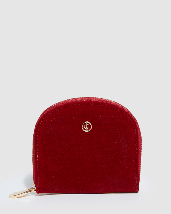 Part of our Dark Romance collection Red finish with Gold tone hardware Vegan suede Envelope style Press stud closure Internal slip and zip pocket Detachable chain crossbody Black lining with...