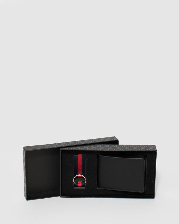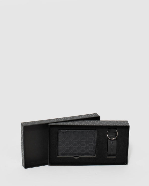 Part of our Hay.Man collection Black finish with silver tone hardware Gift box set including wallet and key ring Perfect gift for the man in your life! Wallet: Textured faux...