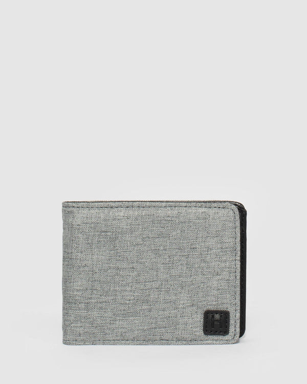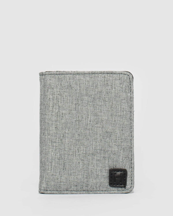 Part of our Hay.Man collection Grey finish with matte black tone hardware Canvas material 3 card slots Zipped coin compartment Note slot Black PU lining Measurements:H11cm x W9cm x D1.5cm...