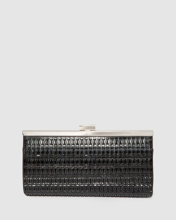 Part of our Clutch Classics collection Silver finish with silver tone hardware Diamante and pu material Push lock clap secures main compartment Internal slip pocket Detachable chain shoulder strap Black...