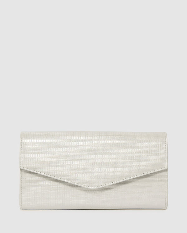 Part of our Silver Sparkle collection Silver finish with silver tone hardware Glitter material Magnetic closure Internal slip pocket Detachable chain shoulder strap White nylon lining with colette by colette...