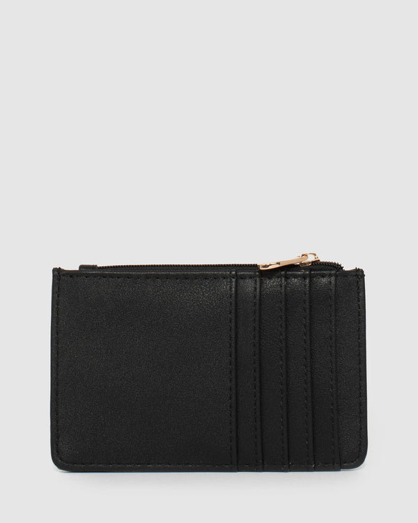 Part of our Gift Me collection Black finish with gold tone hardware Textured faux leather Zip closure 8 card slots 2 slip slots 2 note slots Zipped coin compartment Black...