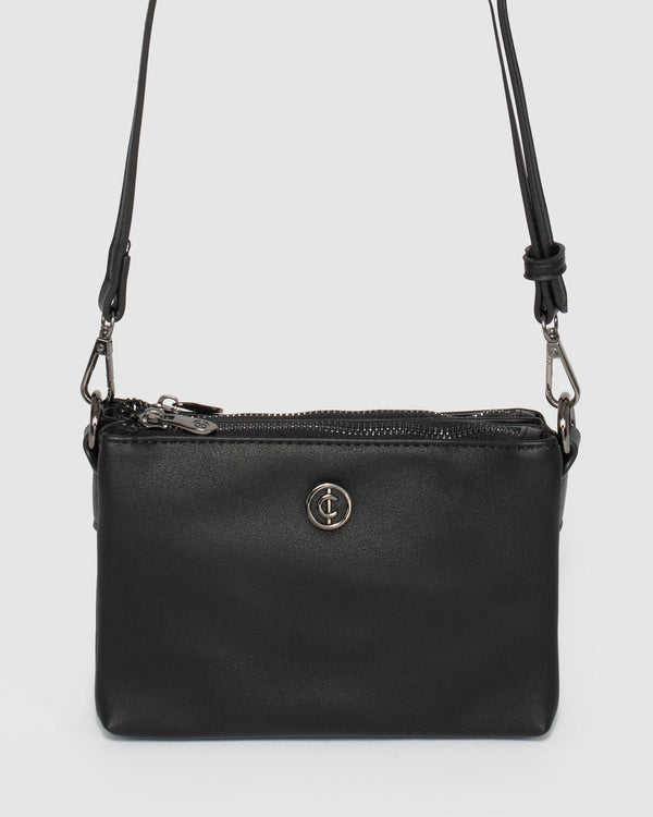Part of our Gift Me collection Black finish with gunmetal tone hardware Textured faux leather Zip closure 2 compartments 3 internal card slots Internal zipped pocket Detachable adjustable shoulder strap...