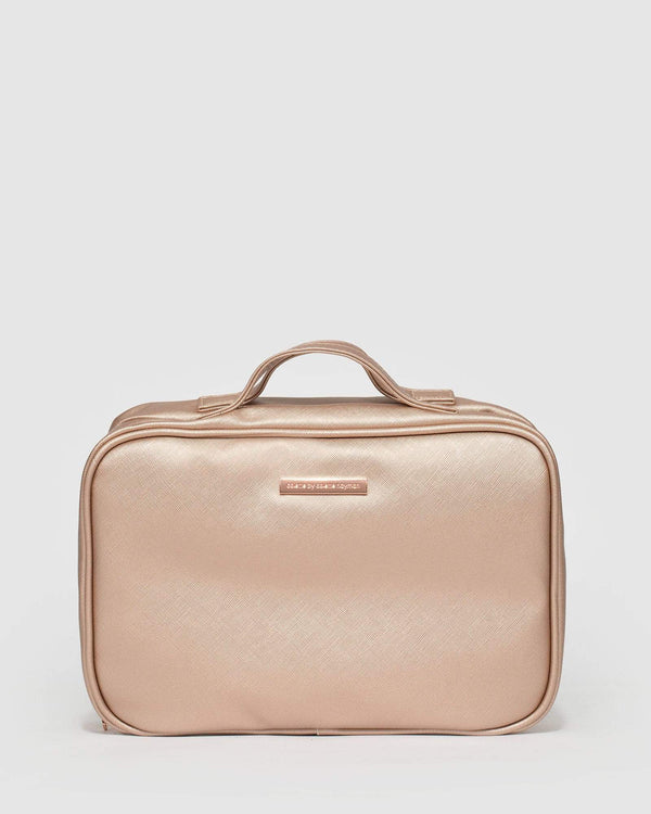 Part of our Feeling Rosie collection Rose Gold finish with rose gold tone hardware Patent faux leather Zip closure Pink lining with colette by colette hayman branding Measurements:H11cm x W15.5cm x...