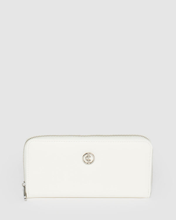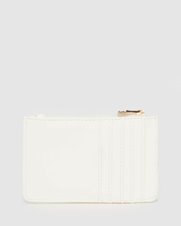 Part of our Gift Me collection White finish with silver tone hardware Textured faux leather Zip closure 8 card slots 2 slip slots 2 note slots Zipped coin compartment White...