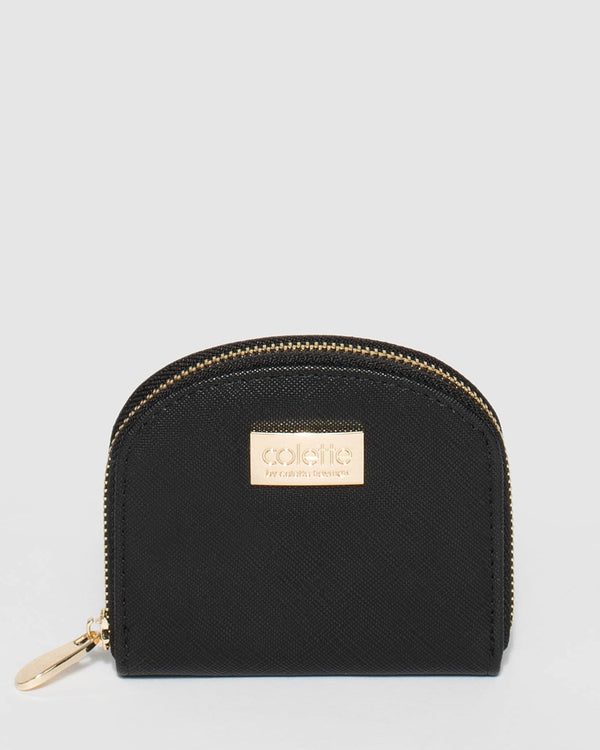Part of our Young and Free collection Black finish with gold tone hardware Saffiano faux leather Zip closure Spacious slot for multiple credit cards Black PU lining Measurements: H9.5cm x W10cm x...