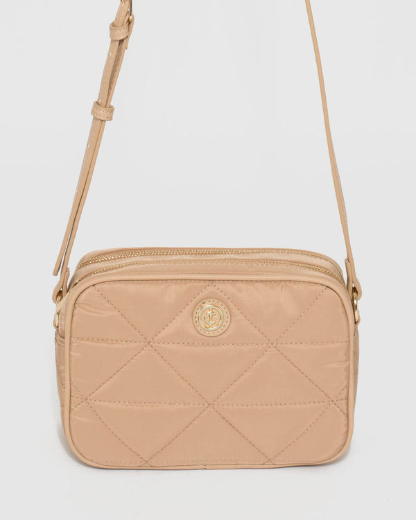Part of our Alison collection Nude finish with gold tone hardware Nylon finish Zipped closure 2 Compartments Internal zipped and slip pockets Fixed adjustable shoulder strap Beige lining with colette...