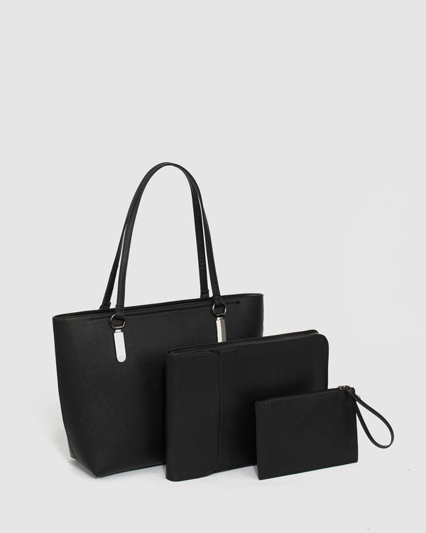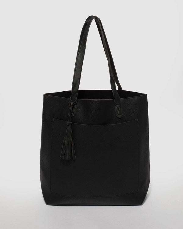 Part of our Selena Bag collection Black finish with Gold tone hardware Pebbled pvc pvc material Detachable tassel External slip pocket Fixed handles Black suedette lining Measurements: H37cm x W40cm...