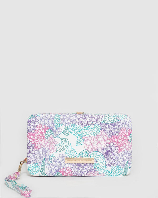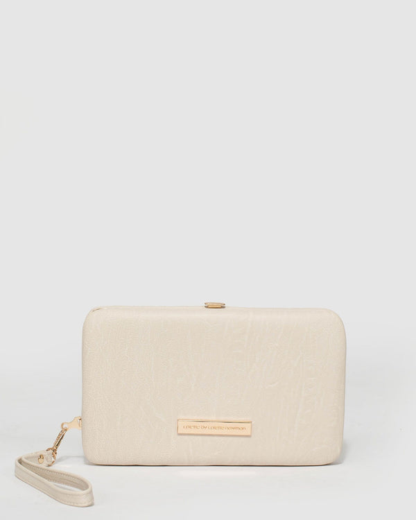 Part of our Full Bloom collection Ivory finish with gold tone hardware Textured faux leather Push lock closure 7 card slots Clear photo ID window Zipped coin compartment Slip slot Elasticated...