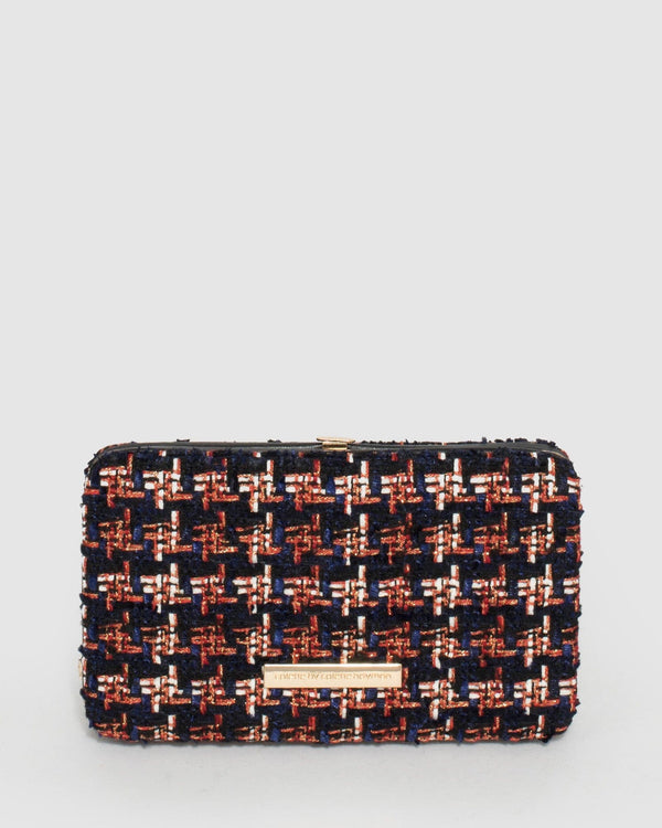 Part of our After Dark collection Multi colour finish with gold tone hardware Sequin tweed finish Push lock closure 7 card slots Clear photo ID window Elasticated slot fits most...