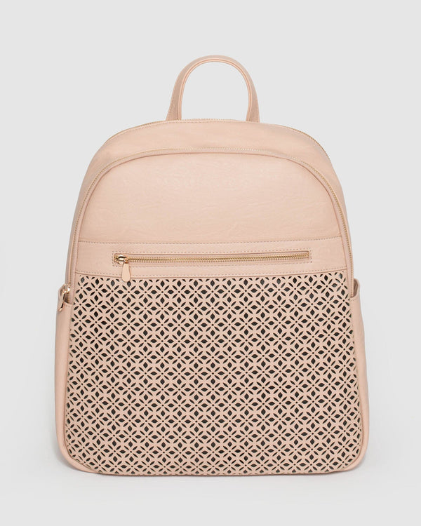 Part of our Schools In collection Pink finish with gold tone hardware Punch out textured faux leather Zip around closure External zipped pocket on front 2 compartments 3 internal card...