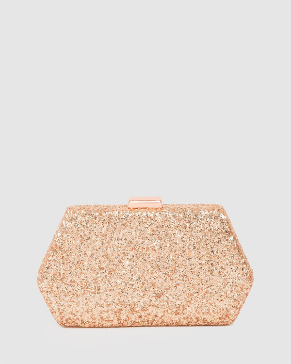 Part of our Rose Sparkle collection Rose gold finish with gold tone hardware Hardcase Glitter detail Push lock closure Internal slip pocket Fixed chain top handle Detachable chain crossbody strap Ivory...