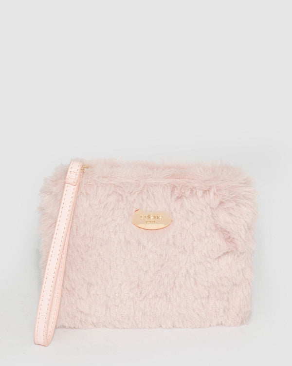 Part of our Hunny Bunny collection Pink finish with gold tone hardware Fluffy finish Zip closure Internal zipped pocket Fixed wristlet strap Ivory lining with colette by colette hayman branding...