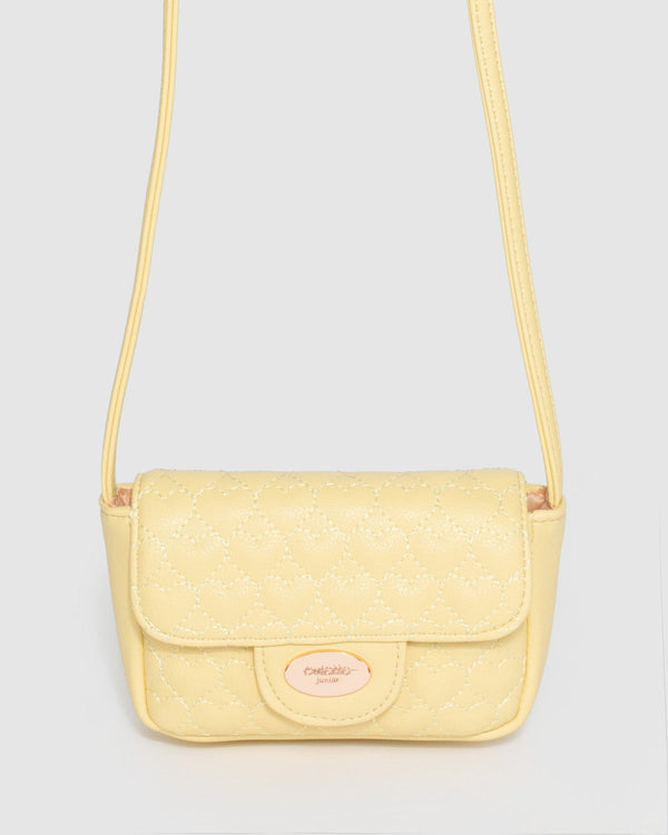 Part of our Hunny Bunny Junior collection Yellow finish with gold tone hardware Textured faux leather Magnetic closure Fixed shoulder strap Beige lining with colette by colette hayman branding Measurements:...
