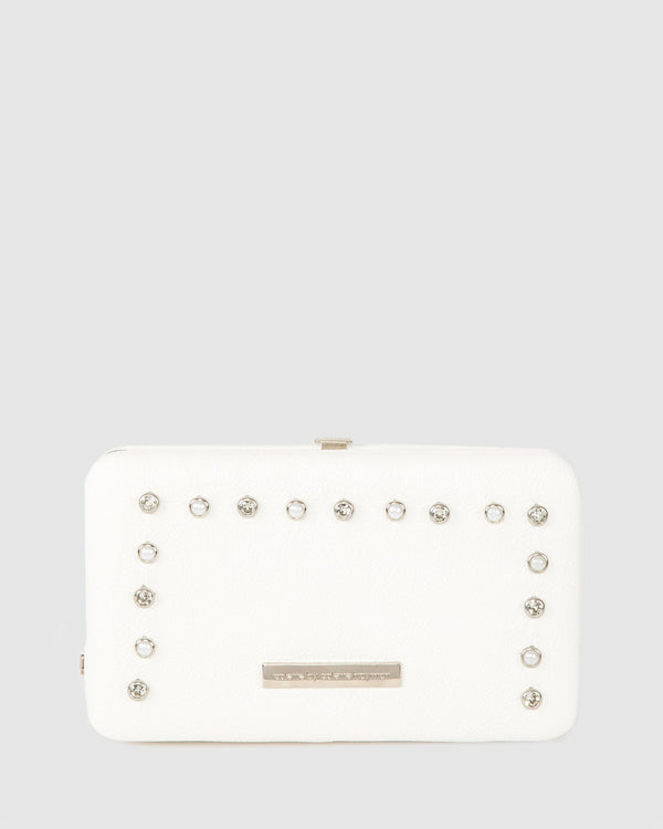 White Keeley Crystal Clasp Clutch Bag
