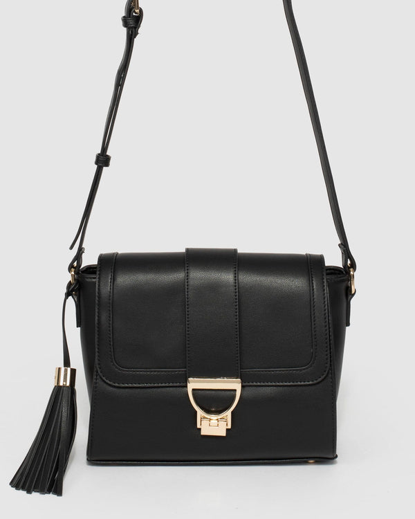 Black Pia Tassel Medium Crossbody Bag